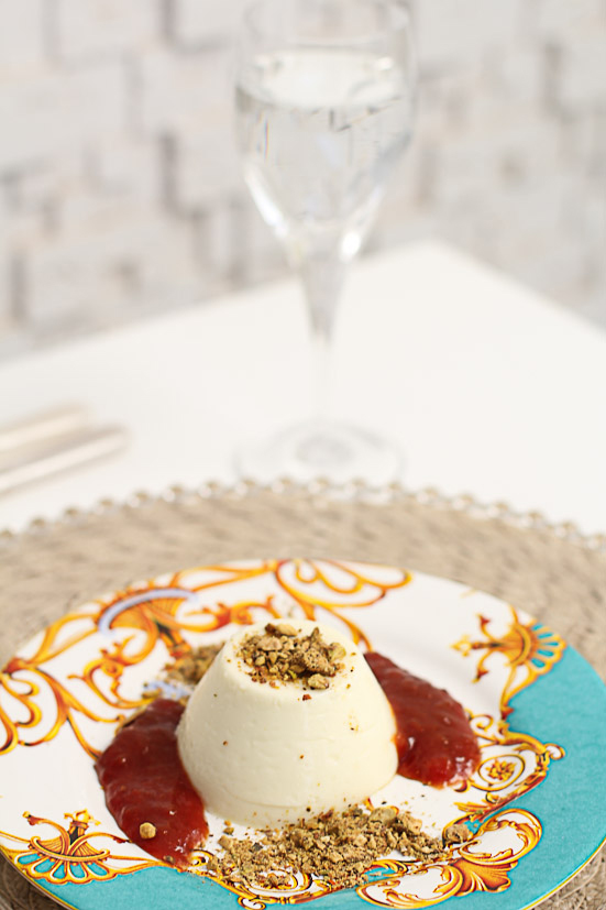 Panacotta com Calda de Goiabada e Farofa de Pistaches